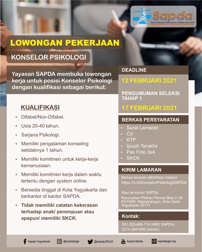 Pengumuman Seleksi Tahap 2 Konselor Psikologi SAPDA
